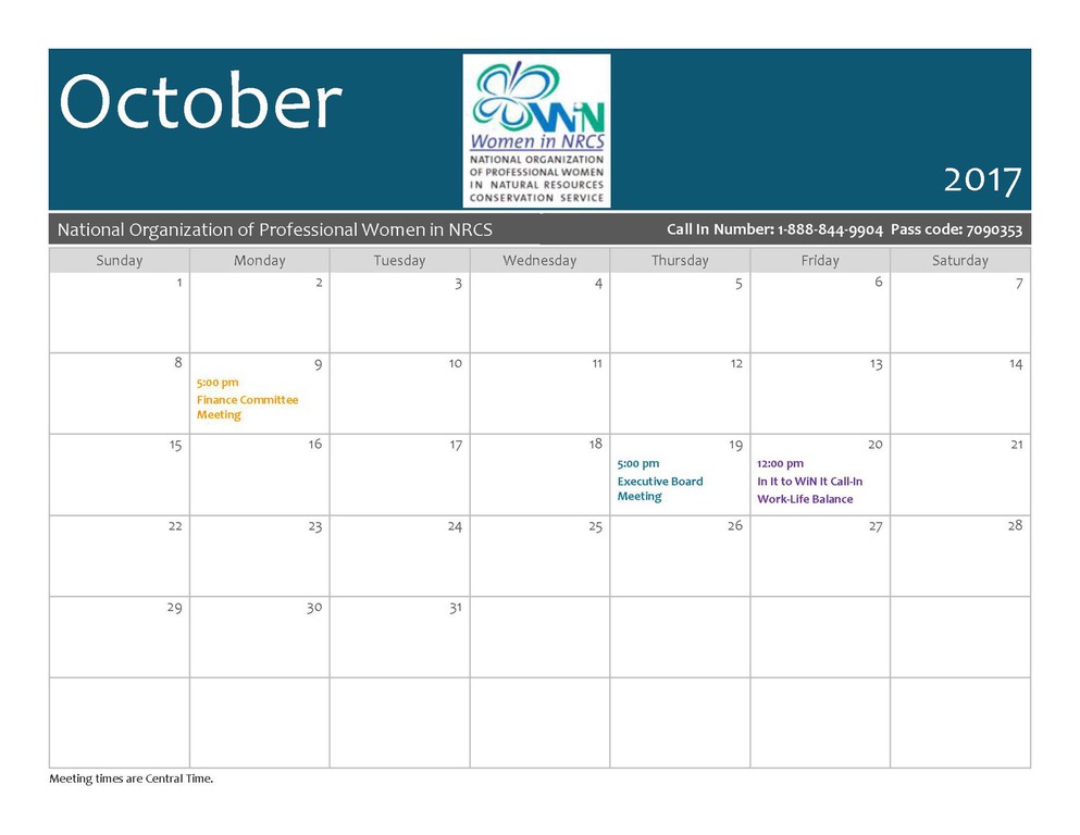 All are welcome to join WiN National Council, Executive Board, and committee teleconferences. Please find the enclosed calendar and contact your respective Regional Representative for